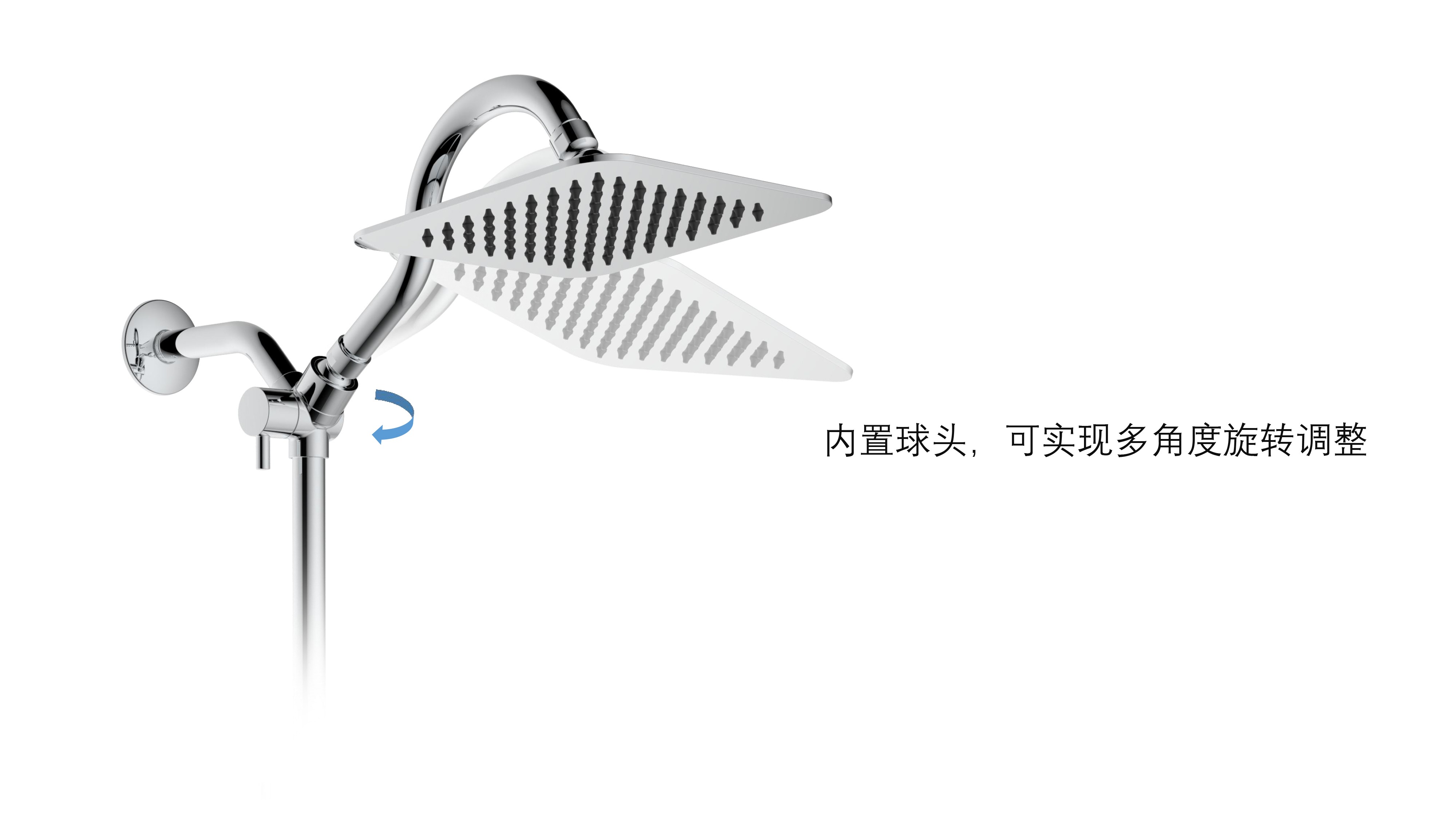 上出水彎管套裝;頂噴內(nèi)置球頭,可實現(xiàn)多角度旋轉調(diào)整;把手切換頂噴出水、花灑出水;轉動把手調(diào)節(jié)滑座高低