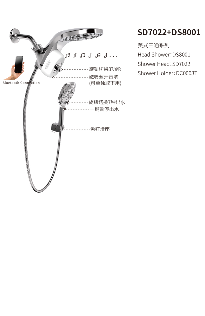SD7022-DS8001 藍(lán)牙音樂淋浴